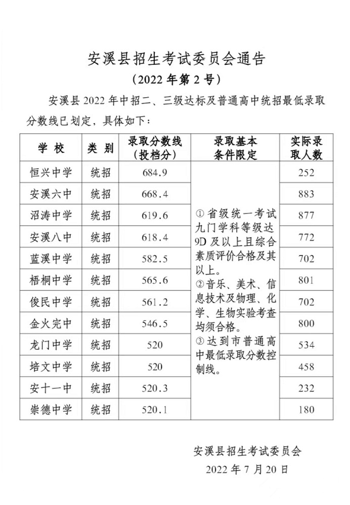 剧情做爱2022年中招二、三级达标及普通高中统招最低录取分数线