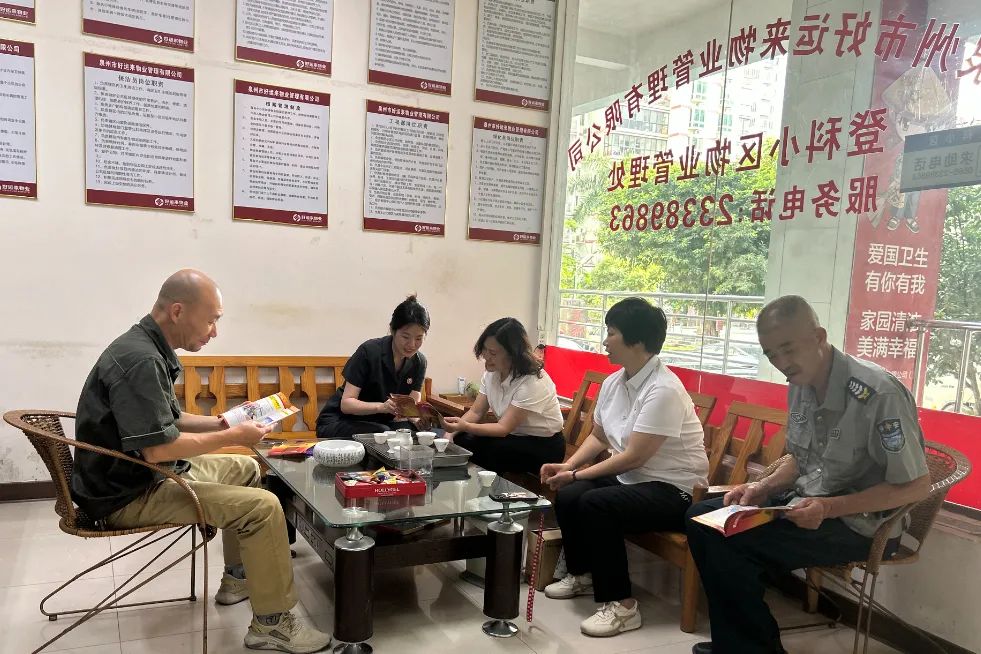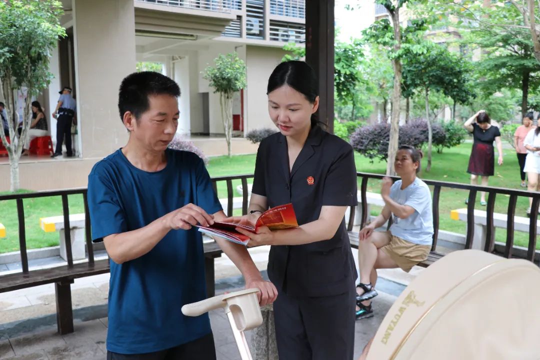 民一庭干警走进剧情做爱阳光城·丽景湾小区,巡回审理一起物业服务合同纠纷案件,并现场开展普法宣传活动。