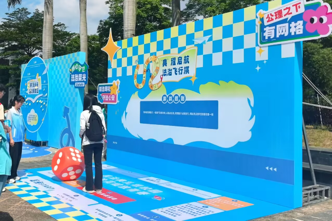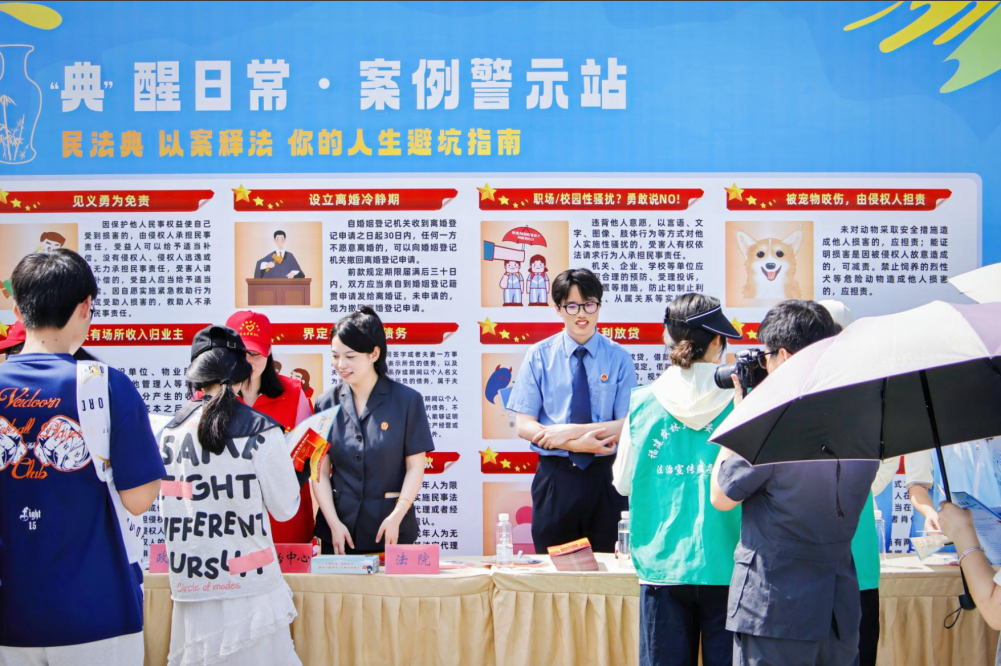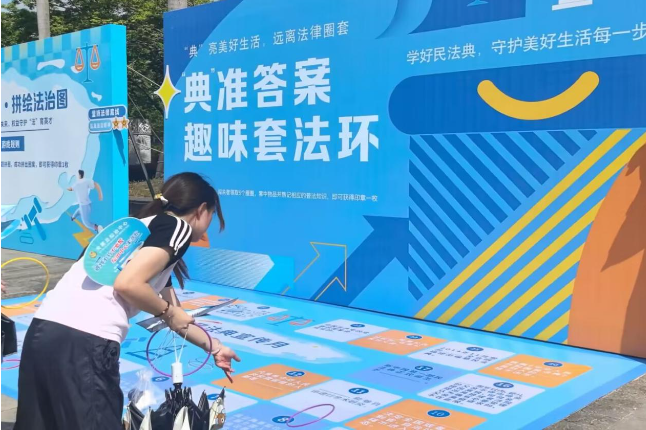 活动现场设有“典”醒日常·案例警示站、“典”防诈局·安全护航角、“典”筑防线·无毒先锋营、“典”燃智慧·知识突围赛、“典”跃未来·活力弹跳区、“典”程启航·法治飞行棋、“典”缀生活·拼绘法治图、“典”准答案·趣味套法环和“典”墨留痕·挥毫传法韵共9个民法典主题的互动区域,通过艺术创作、趣味挑战等多元形式,让民法典学习变得妙趣横生,真正实现寓法于乐、润法于心。